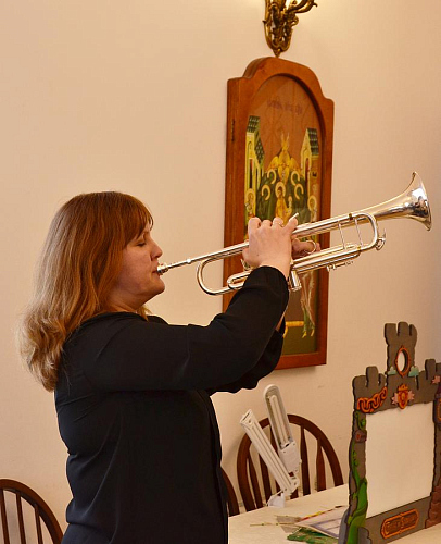 Прозвучали классические произведения: романс Д.Д. Шостаковича из кинофильма "Овод" соло на трубе в исполнении Сандлер Екатерины Вениаминовны; заключительная часть из Оркестровой сюиты № 2 И.С. Баха в исполнении Сандлера Романа Григорьевича; "Чардаш" Витторио Монти исполнил Сандлер Григорий.