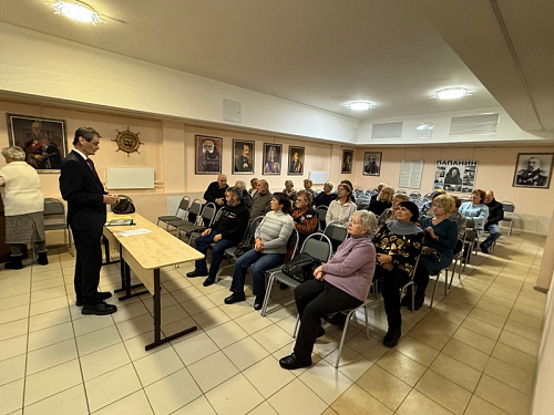 26 ноября 2024 года в актовом хале дома причта храма святого праведного воина Феодора Ушакова в Южном Бутове состоялась лекция для членов совета ветеранов района Южное Бутово и гостей.