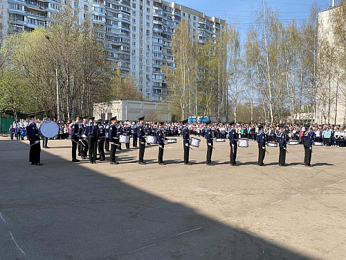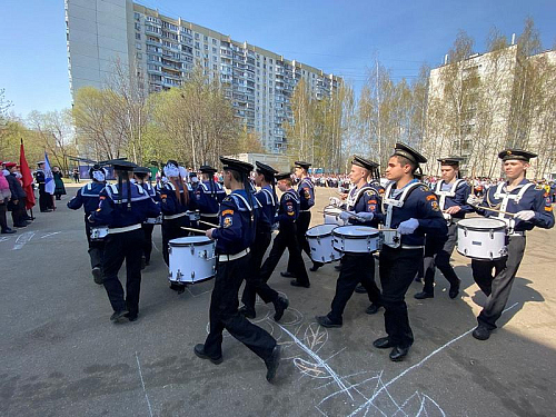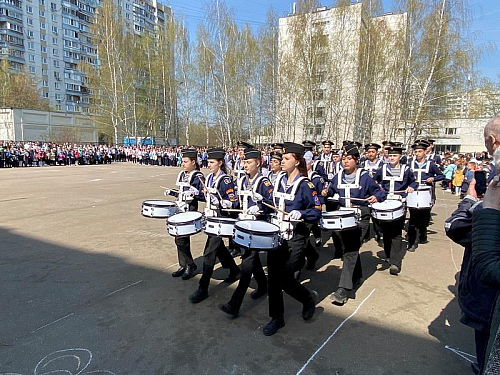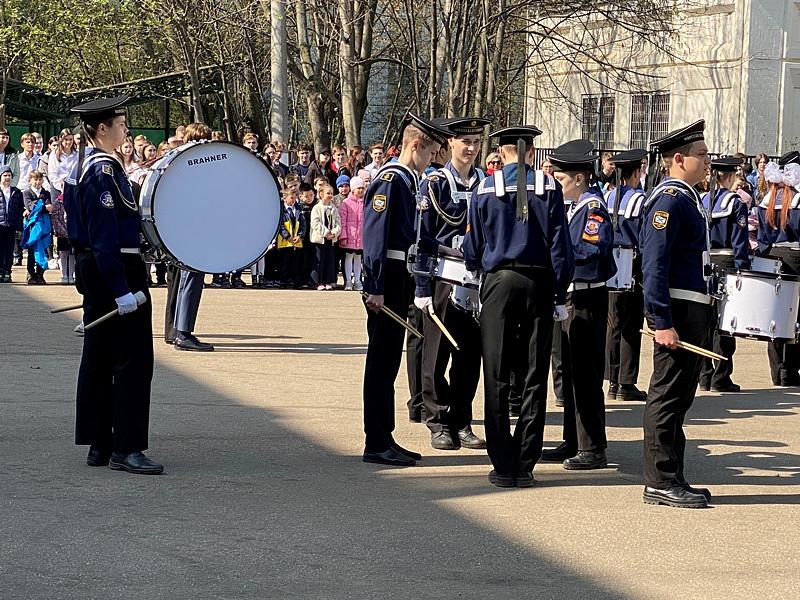С воодушевлением все присутствующие встретили отряд барабанщиков, кадет-юнармейцев, учащихся Государственного бюджетного общеобразовательного учреждения города Москвы «Школа № 1883» под руководством полковника Зятчина Владимира Сергеевича, которые промаршировали по площади с барабанным боем, показывая мастерство и умение обращаться с музыкальными инструментами и строевой подготовки.