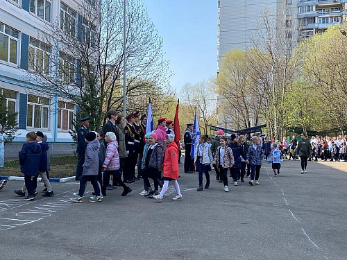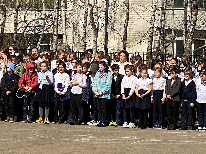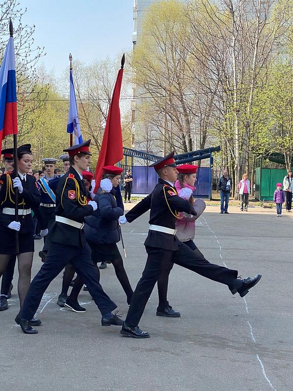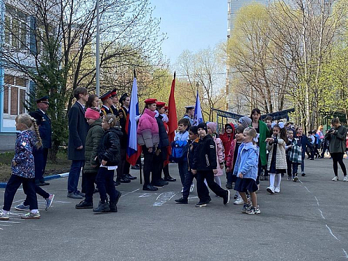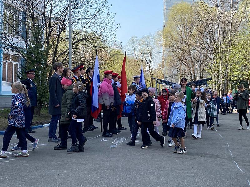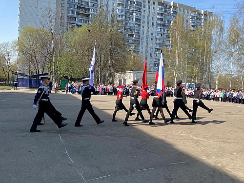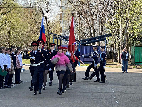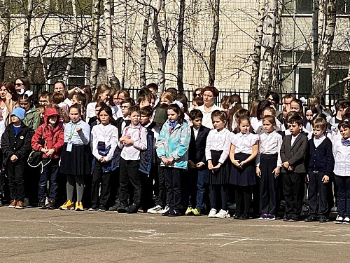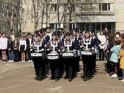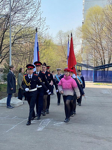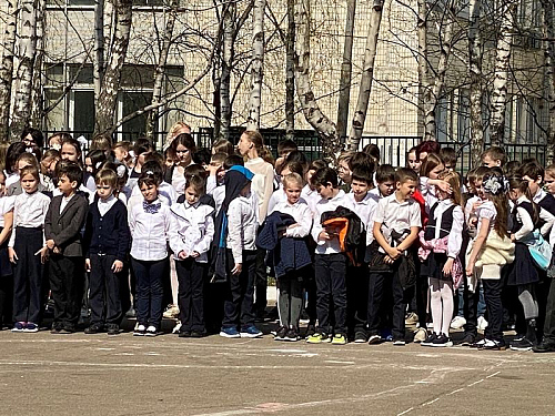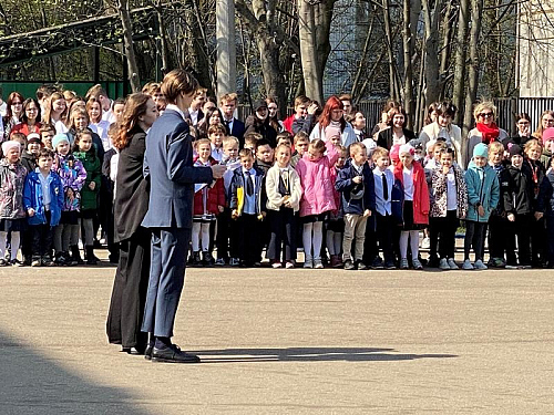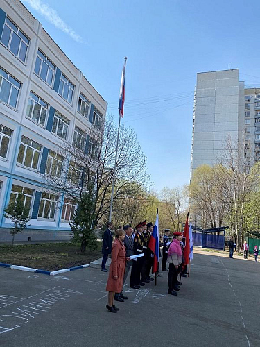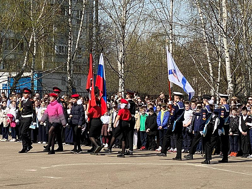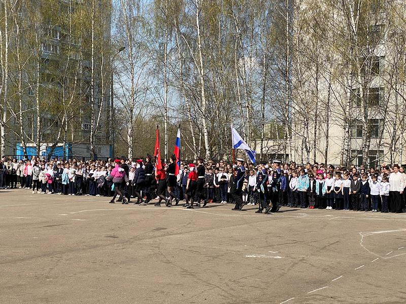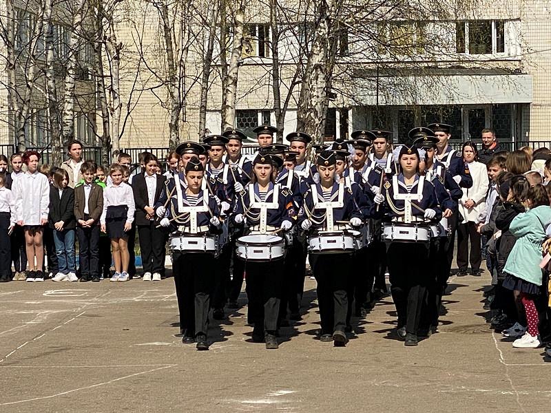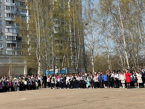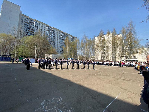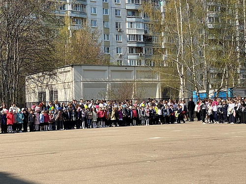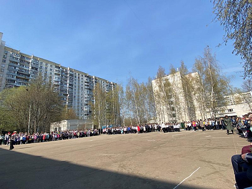 На торжественном построении на площади перед школой присутствовали сотни школьников, преподавателей и родителей, вся школа приветствовала важное событие в жизни учебного заведения.