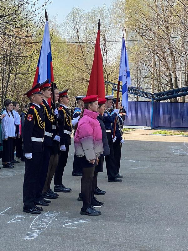 Перед началом мероприятия был поднят флаг Российской Федерации и прозвучал Гимн России, причем, его пели с воодушевлением все школьники. Далее знаменная группа внесла флаги России, Всероссийского детско-юношеского военно-патриотического общественного движения Юнармия и Андреевский флаг на площадь перед школой.