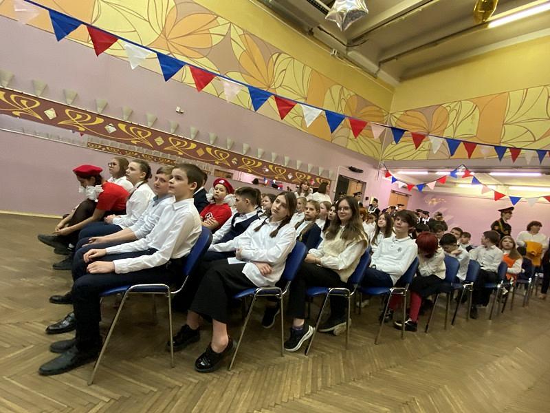 В актовом зале перед участниками мероприятия выступили почетные гости. Со словом приветствия и поздравления выступил настоятель храма игумен Дамиан, который призвал школьникам любить и знать историю России. Он напомнил, что это важное мероприятие в жизни школы проходит накануне Дня Великой Победы, после дня битвы святого князя Александра Невского на Чудском озере и в день 80-летия военной контрразведки СМЕРШ, замечательных героев Великой Отечественной войны.