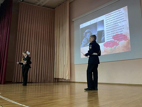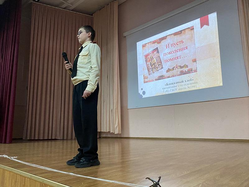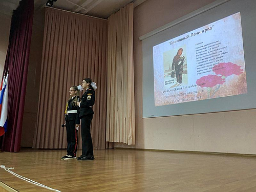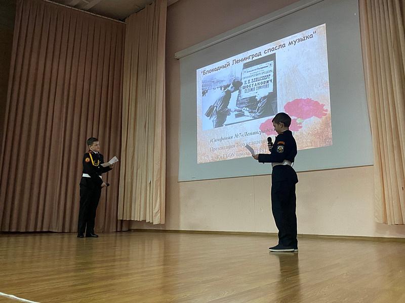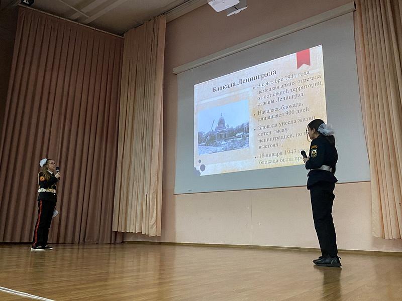 Перед ребятами выступили кадеты старшего класса школы, которые подробно рассказали о событиях блокады Северной столицы, страданиях горожан и мужеству защитников города. Их сообщение сопровождалось показом картин и карт события.