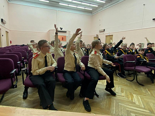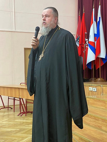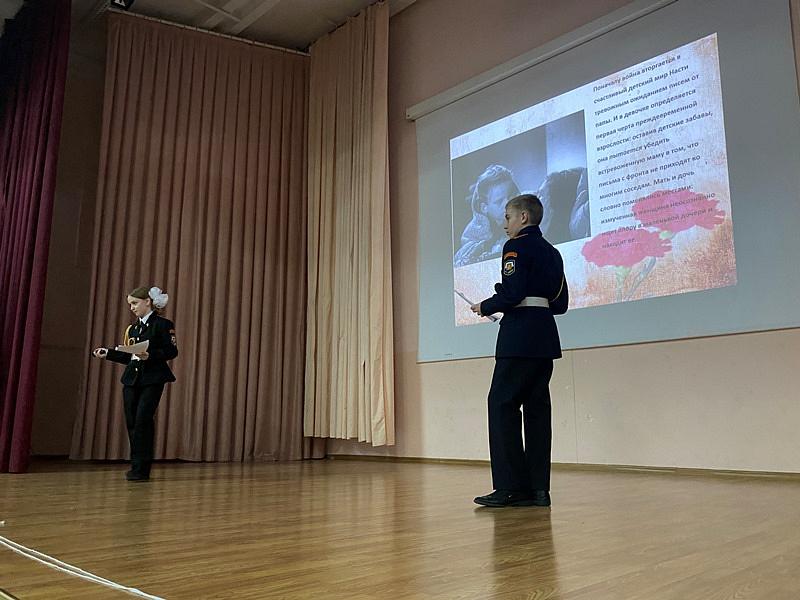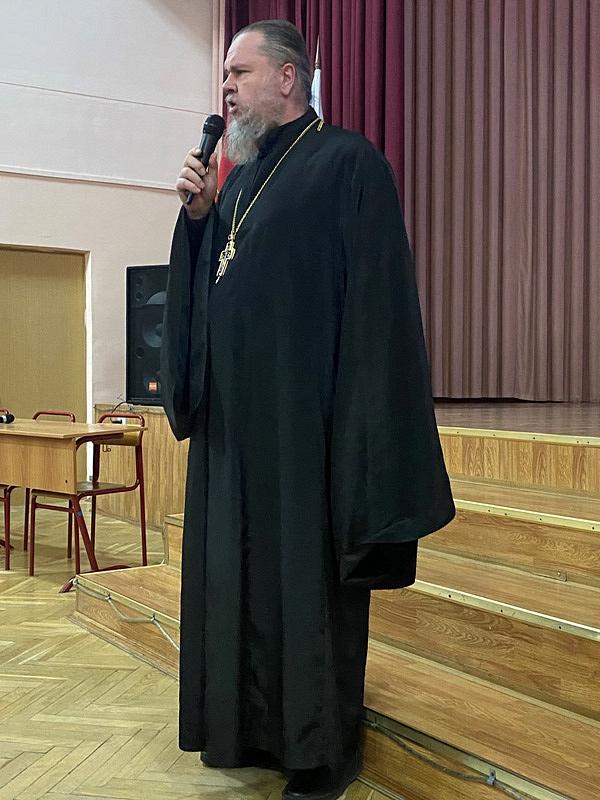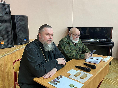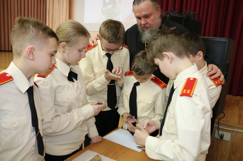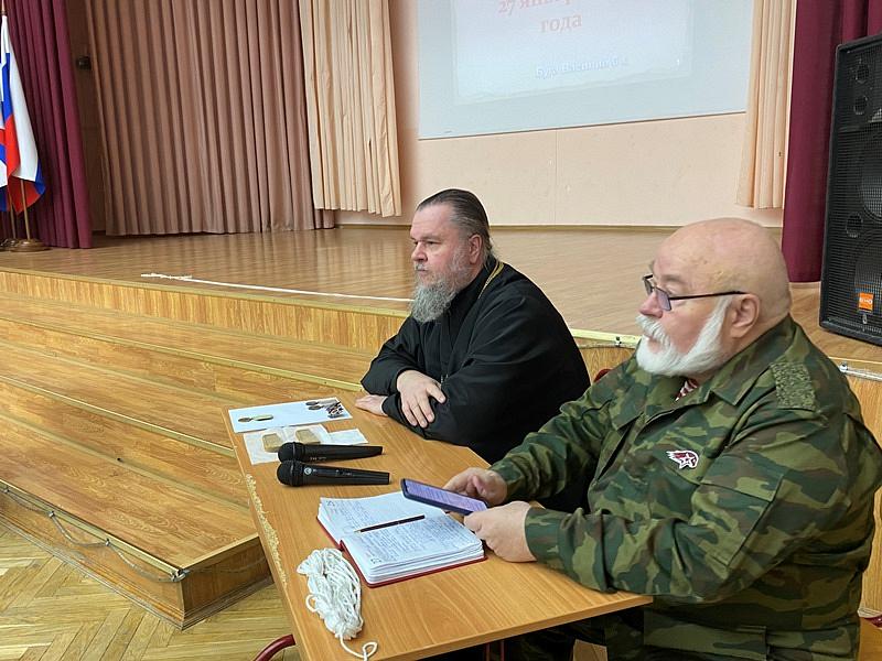 Перед ребятами выступили генерал-майор Николай Николаевич Тутрин и игумен Дамиан (Залетов). Ребятам подробно рассказали о блокаде и героизме людей. Настоятель напомнил о дневнике Тани Савичевой. Николай Николаевич рассказал о своей поездке в Донецк.