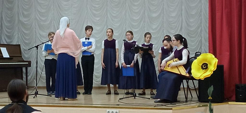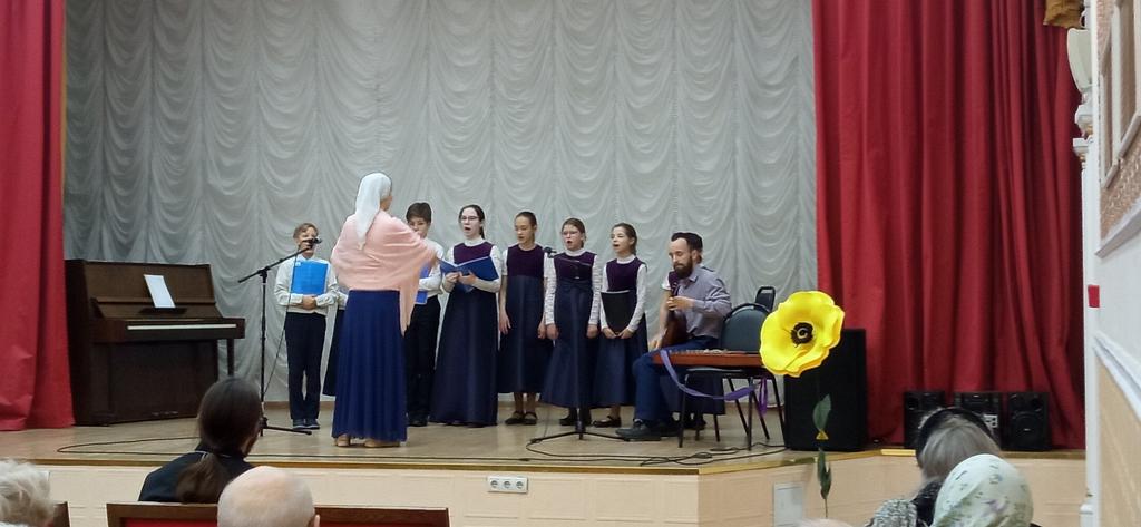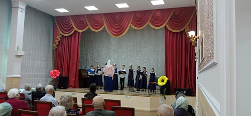 Иерей Димитрий во вступительном слове поздравил ветеранов и администрацию с престольным и с прошедшими праздниками. Зрителям были представлены патриотические стихотворения. Вокально-хоровой ансамбль Воскресной школы под руководством О.И. Лобановой исполнил духовные произведения.