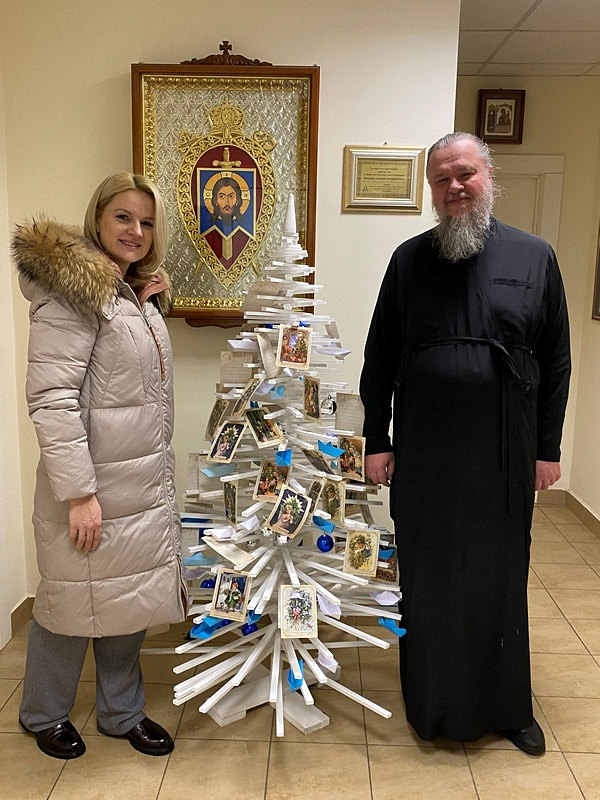 Настоятель храма игумен Дамиан (Залетов) принял новогодний дар и тепло поблагодарил Елену Николаевну и тружеников школы. Он отметил замечательный труд ребят, которые вложили свою любовь и радость в изготовление праздничной ели.