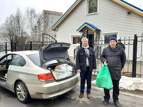 В отдел по социальному служению направлены две машины, загруженные продуктами и необходимыми для жизни товарами.