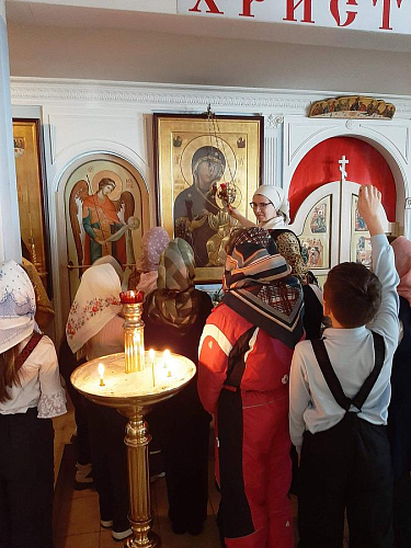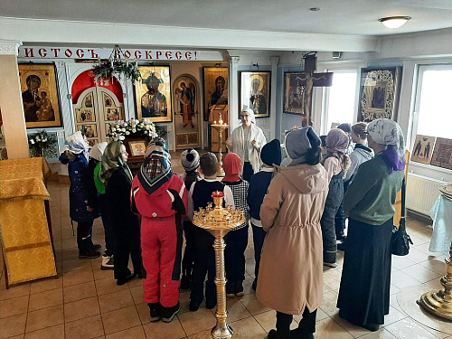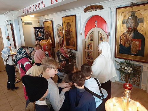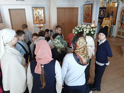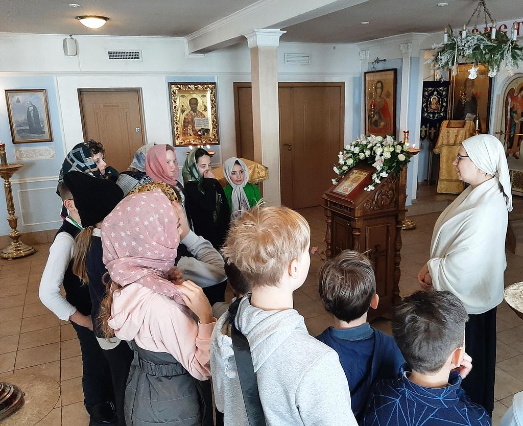 Школьники узнали, из каких частей состоит православный храм, что находится в алтаре, познакомились со святынями храма.