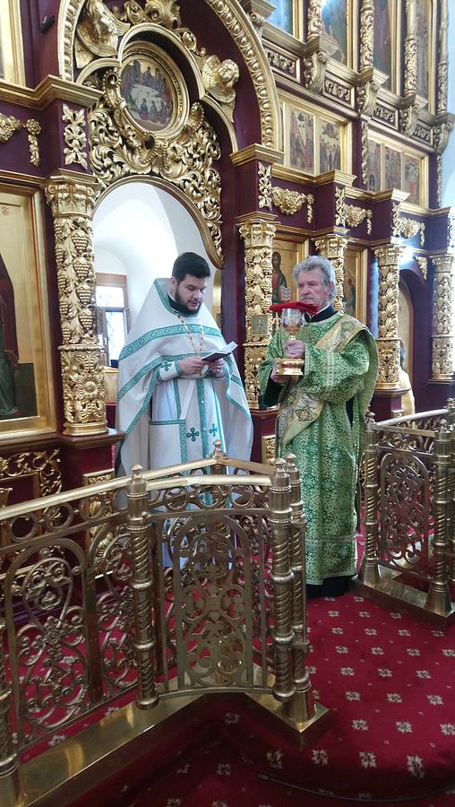 Божественную Литургию совершили: помощник настоятеля иеромонах Ефрем (Русу), протоиерей Виктор Постикаи протодиакон Александр Волков.