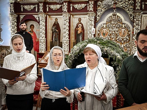 Затем своим исполнительским мастерством порадовал хор храма под управлением регента Ларисы Артющенко (солисты: Дарья Панченко и Иван Широков). Были исполнены произведения как классических духовных композиторов, так и современных, а также произведения греческого распева Валаамского монастыря в аранжировке духовных лиц: тропарь Рождеству Христову (муз. С. Дегтярева), кондак (муз. Д. Бортнянского), «Под Твою милость…» (муз. Я. Чмелева), «Радуются вси Ангели» (муз. М.П. Строкина), Светилен на Рождество Христово (муз. диакона С. Трубачева), «Ныне отпущаеши…» (муз. А. Третьякова), малое славословие (муз. М. Остроглазова), Стихира Рождеству Христову «Слава в вышних Богу…» (муз. Косолапова) и другие. Также в репертуаре хора прозвучали произведения народного и авторского творчества, а именно: псальм «Возложили на Исуса тяжкий Крест…» и колядка А. Мельничука «Дин – дон».