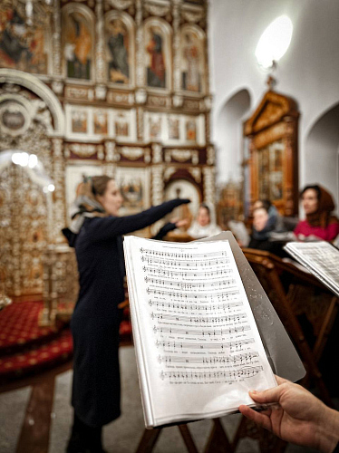 Были исполнены песнопения знаменного, болгарского и греческого распева, Херувимская песнь из рукописных нот (двухголосный вариант), которые были подготовлены менее, чем за два месяца занятий.