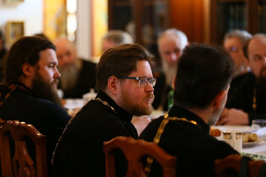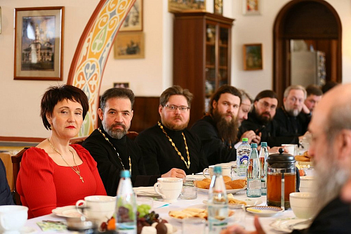 В ходе встречи представители духовенства и администрации округа обсудили возможны формы взаимодействия при организации мер поддержки семьям, особенно многодетным и малообеспеченным, проведения совместных праздничных мероприятий и благотворительных акций.