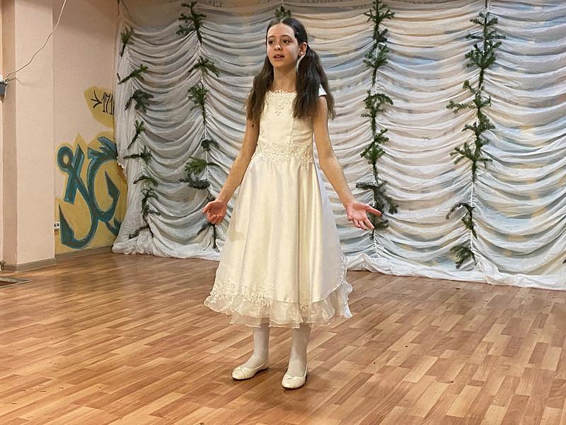 После окончания основной концертной программы Лариса Игнатьевна предложила вступить всем желающим. Перед собравшимися выступили дети из зрительного зала. С ярким выступлением рождественского и новогоднего стихов выступила член общественной организации "Дети Великой Отечественной войны"Майорова Зинаида Степановна.