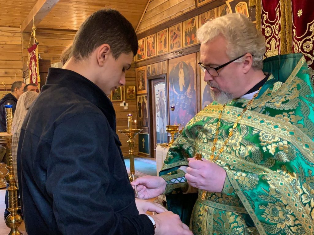9 апреля 2023 года, в Неделю 6-ю, ваий, праздник Входа Господня в Иерусалим, в храме преподобного Иосифа Волоцкого в Старом Беляеве был совершен чин присоединения к Православной Церкви.