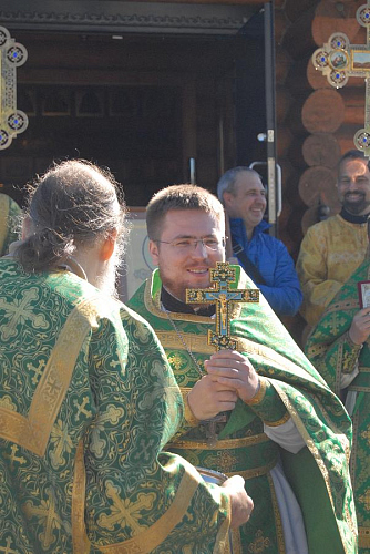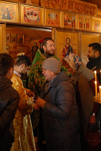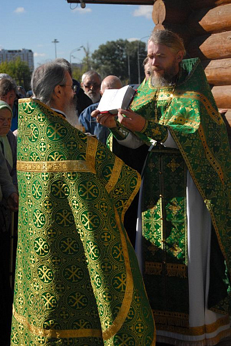 Настоятелю храма иерею Илии Сычеву сослужили: настоятель храма иконы Божией Матери «Знамение» в Захарьино иерей Владимир Галкин, настоятель храма иконы Божией Матери «Отрада и Утешение» на Каховке иерей Александр Мелин и клирик храма преподобной Евфросинии, княгини Московской, в Котловке иерей Сергий Вязьмин.