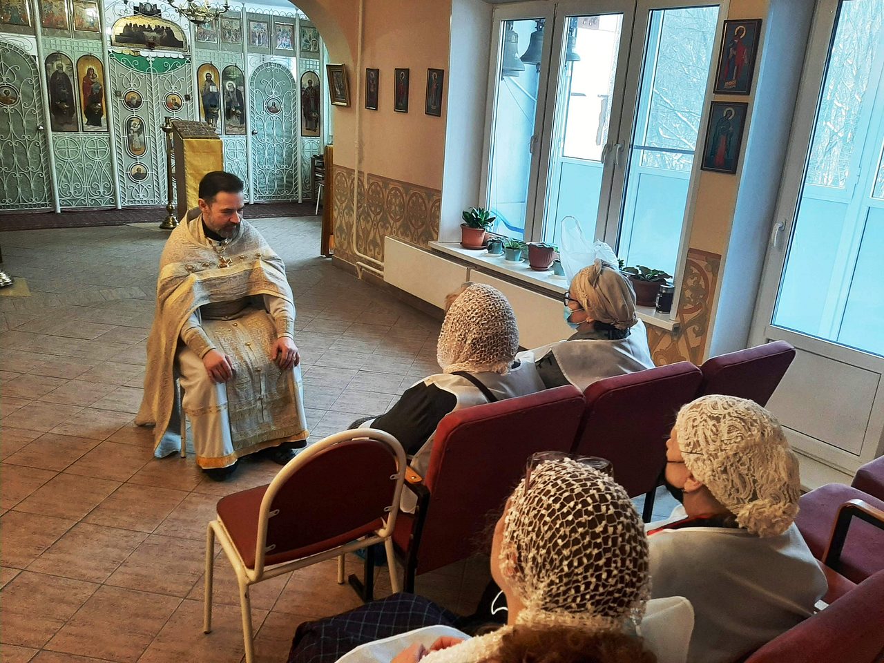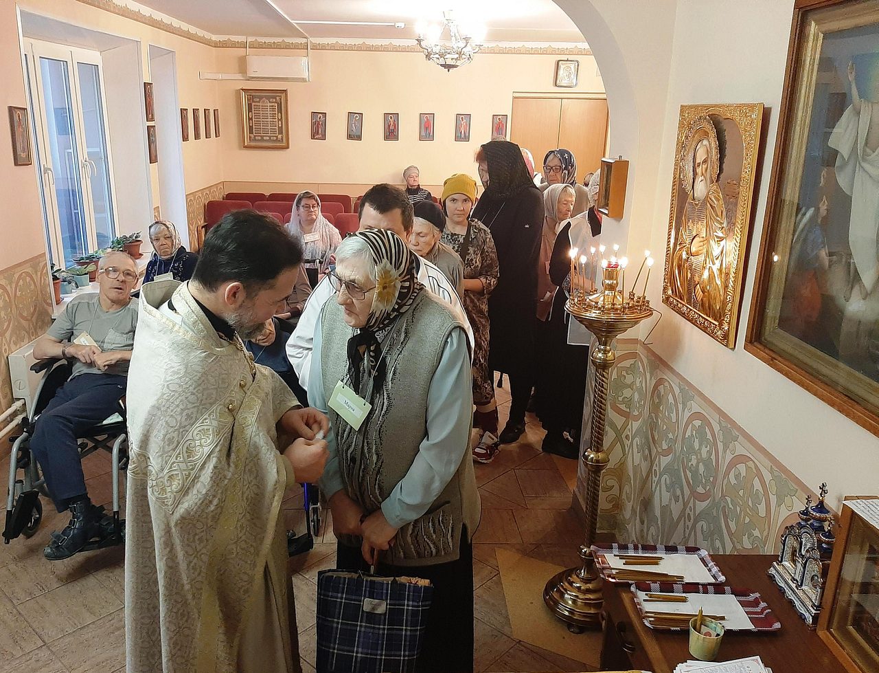 17 февраля 2024 года в храме преподобного Серафима Саровского при Геронтологическом центре «Юго-Западный», приписанном к храму Иверской иконы Божией Матери в Беляеве, настоятель иерей Игорь Краев совершил Божественную Литургию.
