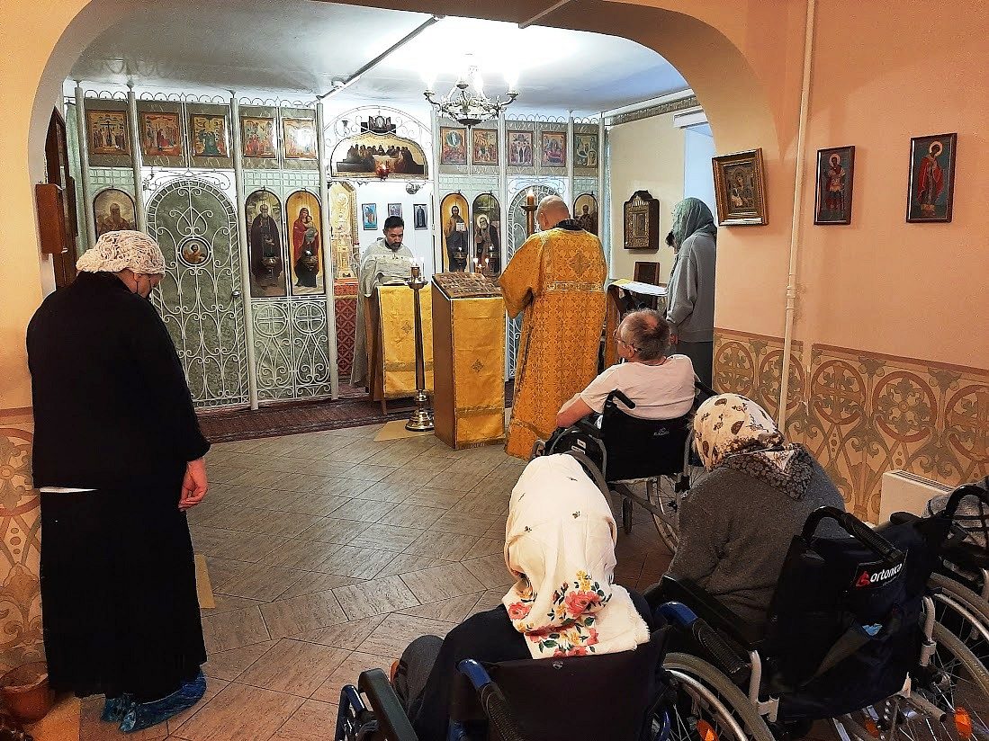 25 ноября 2023 года в храме преподобного Серафима Саровского при Геронтологическом центре "Теплый Стан", приписанном к храму Иверской иконы Божией Матери в Беляеве, настоятель иерей Игорь Краев совершил Божественную Литургию.
