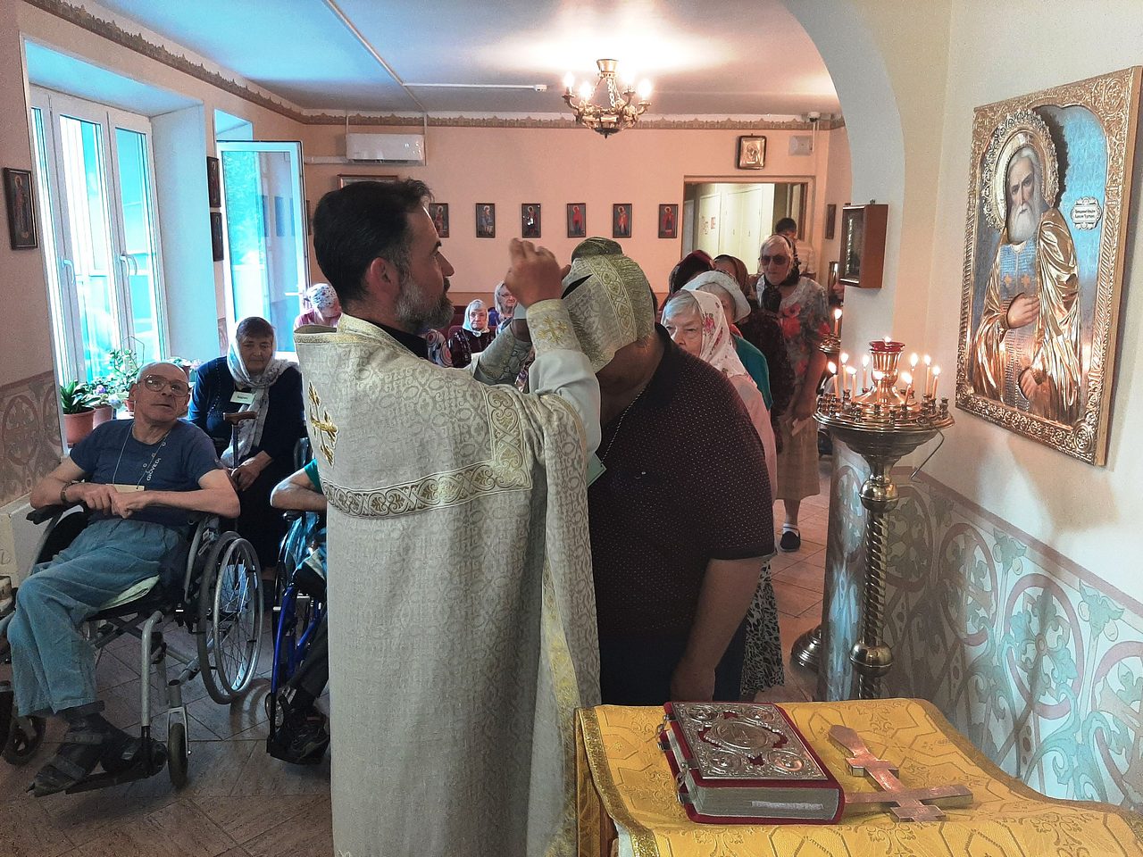 29 июня 2024 года в храме преподобного Серафима Саровского при Геронтологическом центре «Юго-Западный», приписанном к храму Иверской иконы Божией Матери в Беляеве, настоятель иерей Игорь Краев совершил Божественную Литургию.
