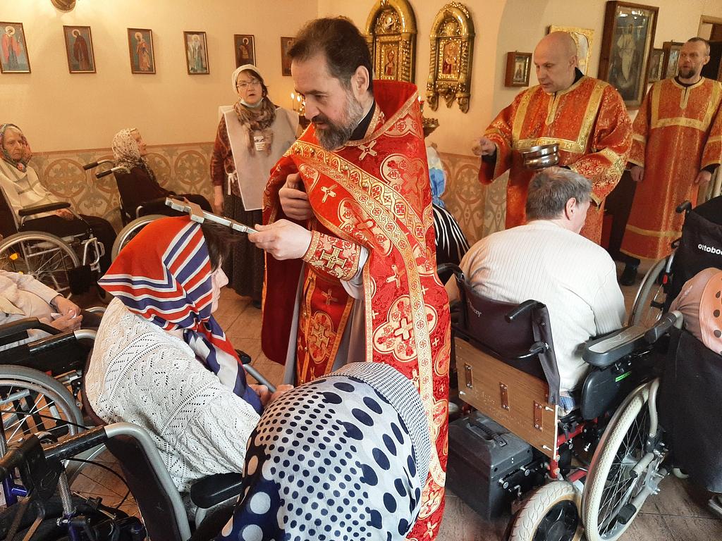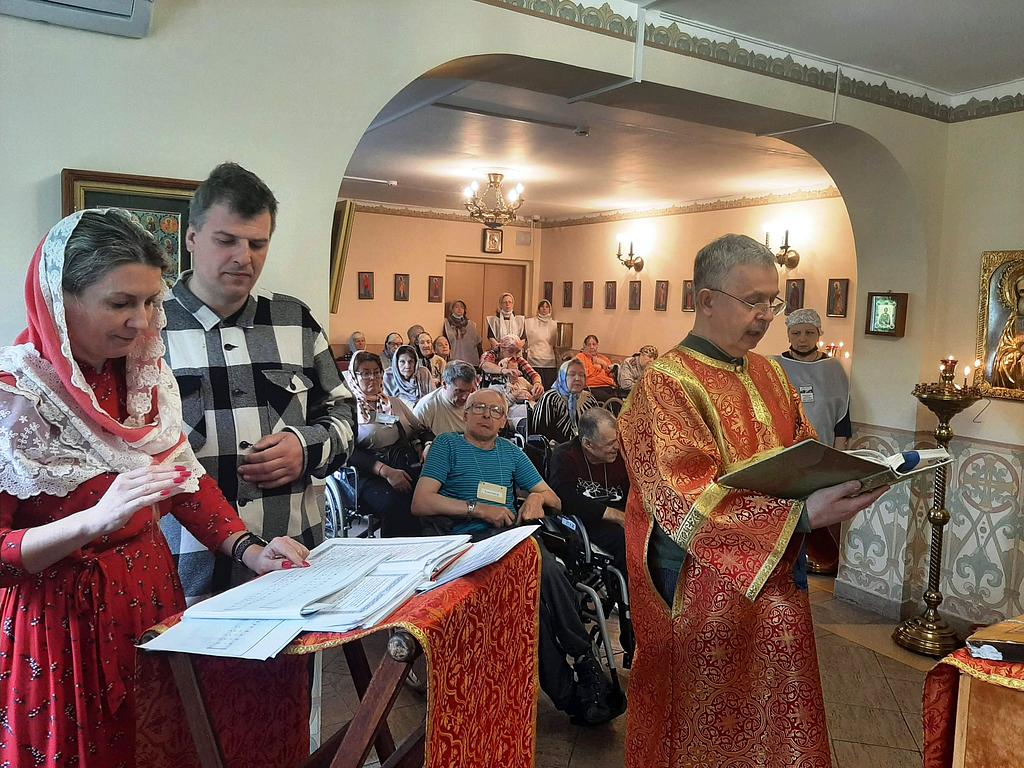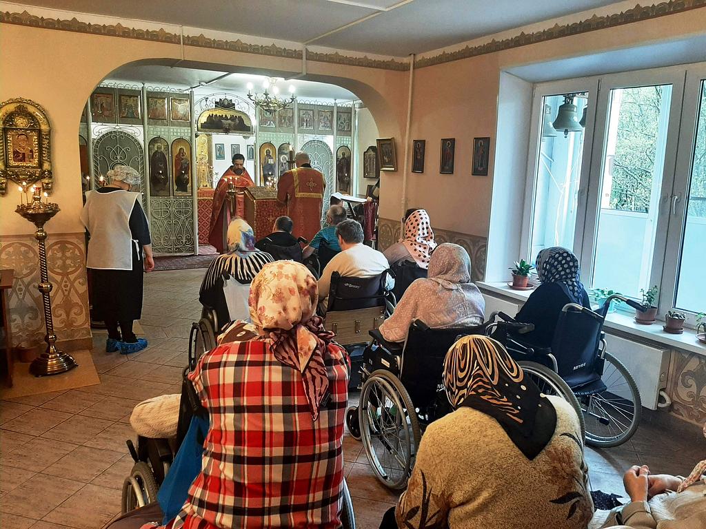 29 апреля 2023 года в храме преподобного Серафима Саровского при Геронтологическом центре «Теплый Стан», приписанном к храму Иверской иконы Божией Матери в Беляеве, настоятель иерей Игорь Краев совершил Божественную Литургию.