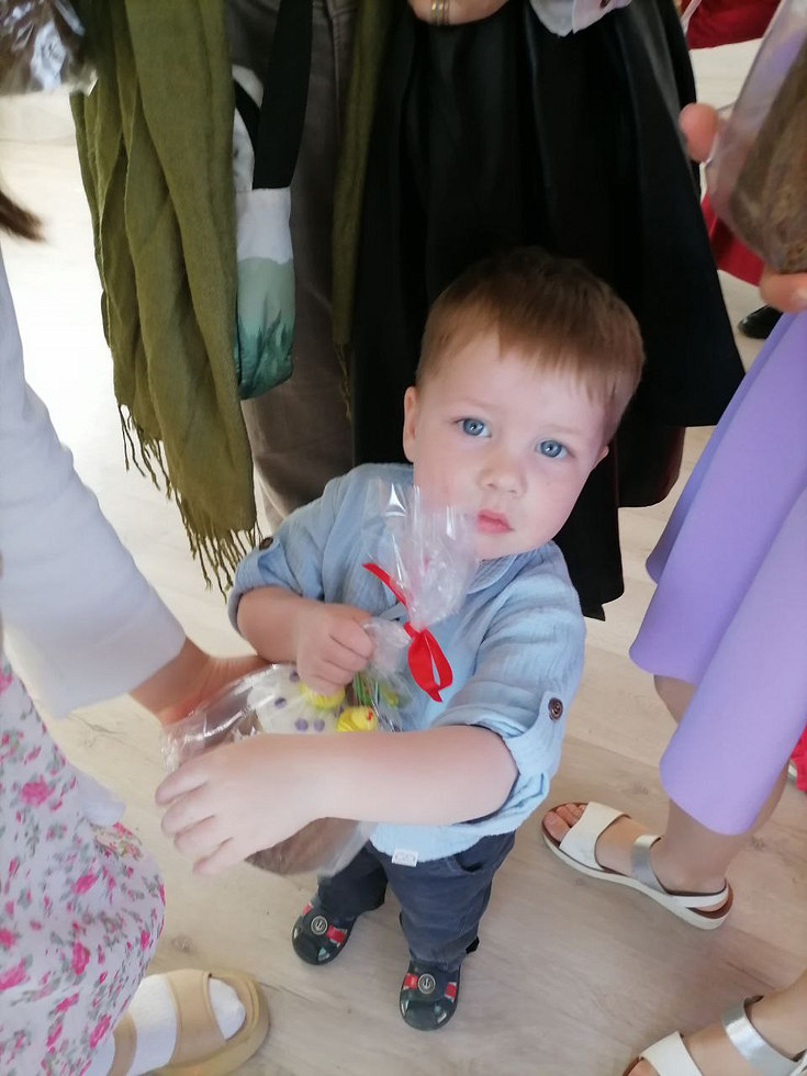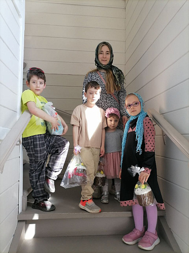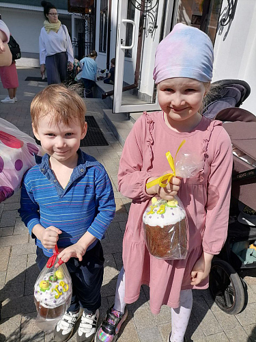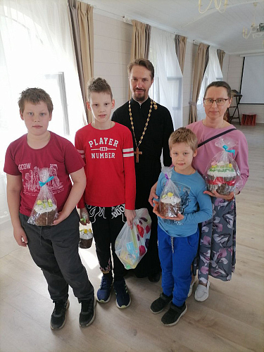 Дарили куличи и традиционные наборы к Пасхе. Подарки получил 91 ребенок из тридцати семей.