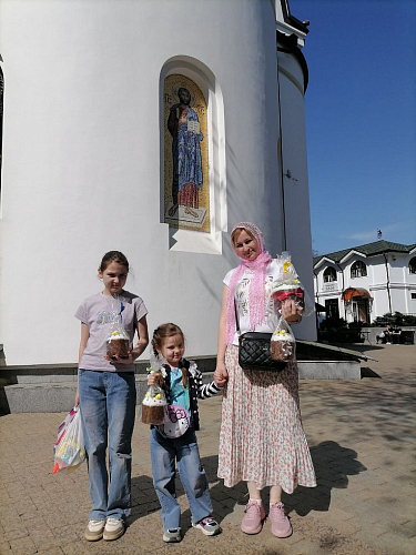 20 апреля 2025 года по окончании поздней Божественной литургии социальная служба храма поздравила окормляемые многодетные семьи прихода с праздником Светлого Христова Воскресения.