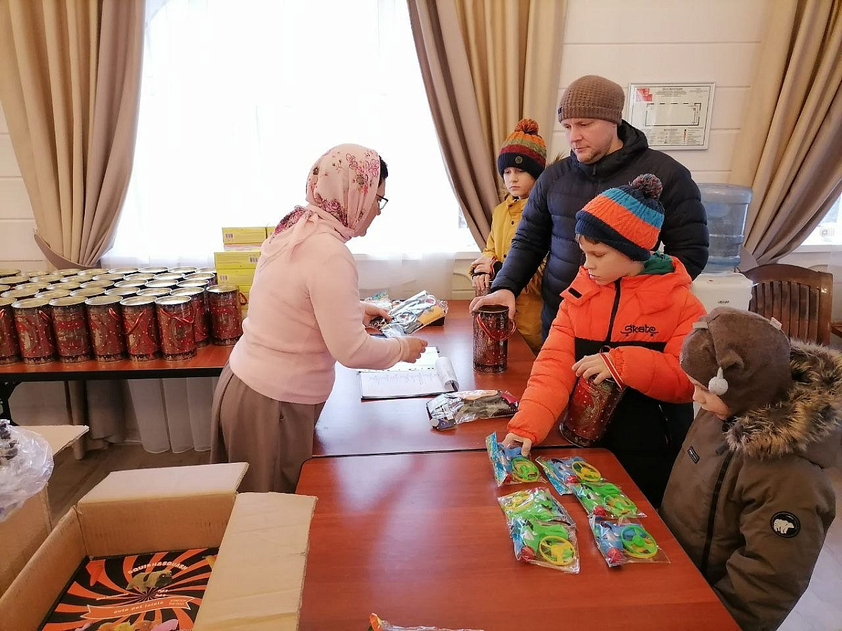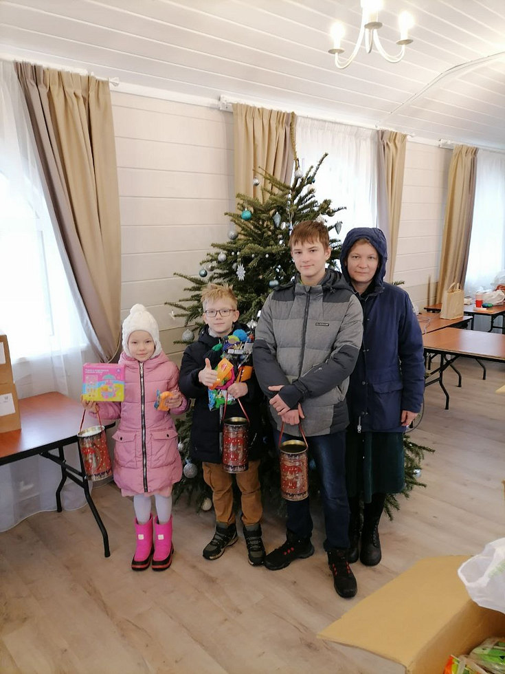 Окормляемые семьи прихода получили рождественские подарки, которые состояли из традиционных сладостей и наборов для игр. Подарки получили 72 ребенка из 34 многодетных семей.