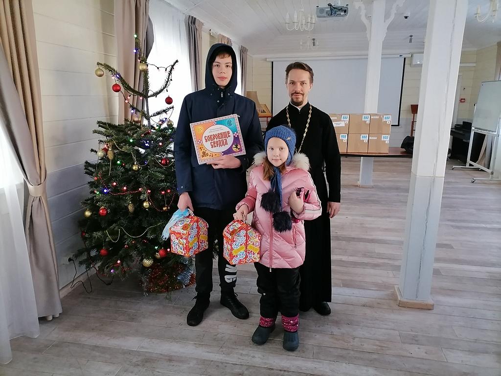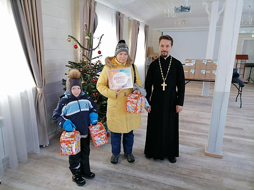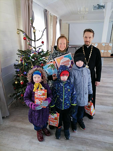 Окормляемые семьи прихода получили рождественские подарки, которые состояли не только из традиционных сладостей, но и подарков родителям, а также настольных игр для всей семьи. Подарки получили 105 детей из 30 многодетных семей.