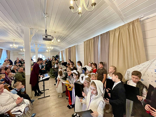 Юные прихожане храма исполнили рождественские колядки, была представлена сценка «Ночь Рождества», а также музыкальные, литературные, танцевальное и акробатические представления.