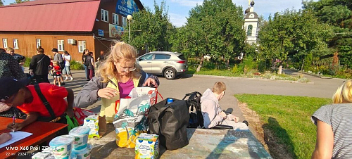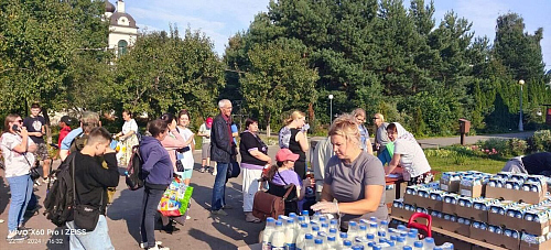 22 августа по благословению настоятеля храма Рождества Христова в Черневе протоиерея Николая Уловича нуждающимся семьям раздали порядка 2 тонны молочной продукции.
