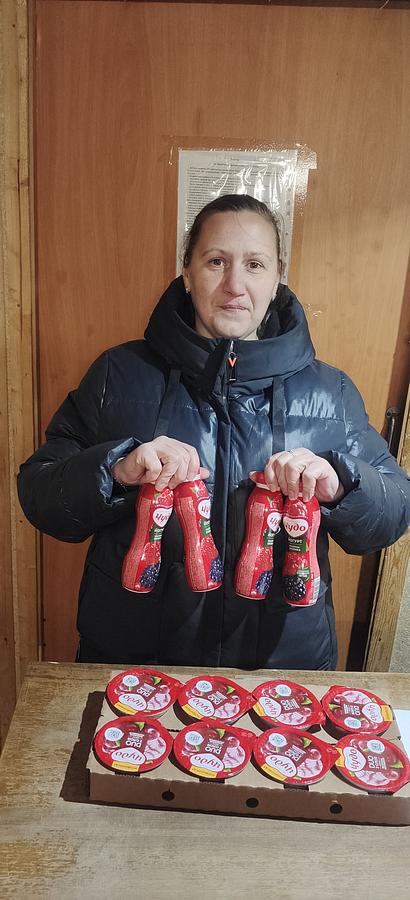 Это йогурты, творожки, молочные коктейли, ряженка, кисломолочная смесь, кефир, хлебобулочные изделия. В среднем порядка двухсот семей — многодетных, малообеспеченных, с детьми-инвалидами — получают продуктовые наборы в ходе каждой акции.