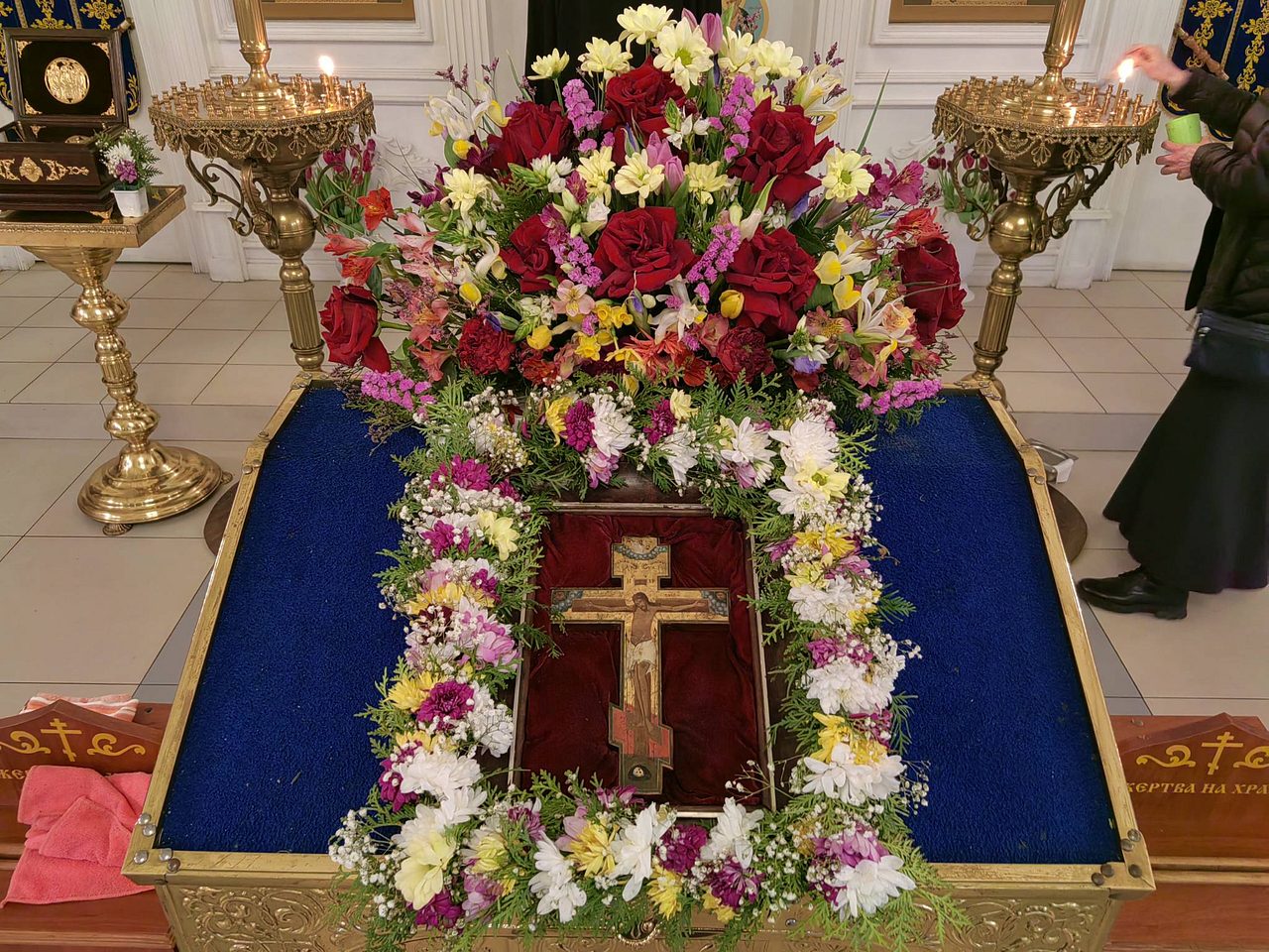 22 марта 2025 года, в Неделю 3-ю Великого поста по благословению настоятеля храма иерея Максима Глухих, в рамках работы храма со школами по Основам Православной Культуры, учащиеся ГБОУ школы 1355 совместно с родителями и учителем Бежбармаковой Эллой Валерьевной приняли участие в украшении храма священномученика Серафима, митрополита Петроградского.