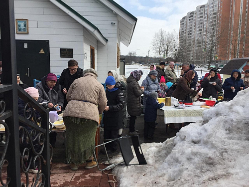Все желающие могли получить православные книги на разную тематику, а также отведать испеченные волонтерами храма блинчики с разнообразными начинками.
