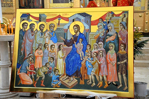Чин освящения иконы Благословение детей совершил настоятель храма иерей Иоанн Омелянчук в сослужении духовенства храма, после которого настоятель обратился с проповедью к собравшимся, где отметил, что примерно 100 имен детей будут вписаны на вечное поминовение на обратной стороне иконы.