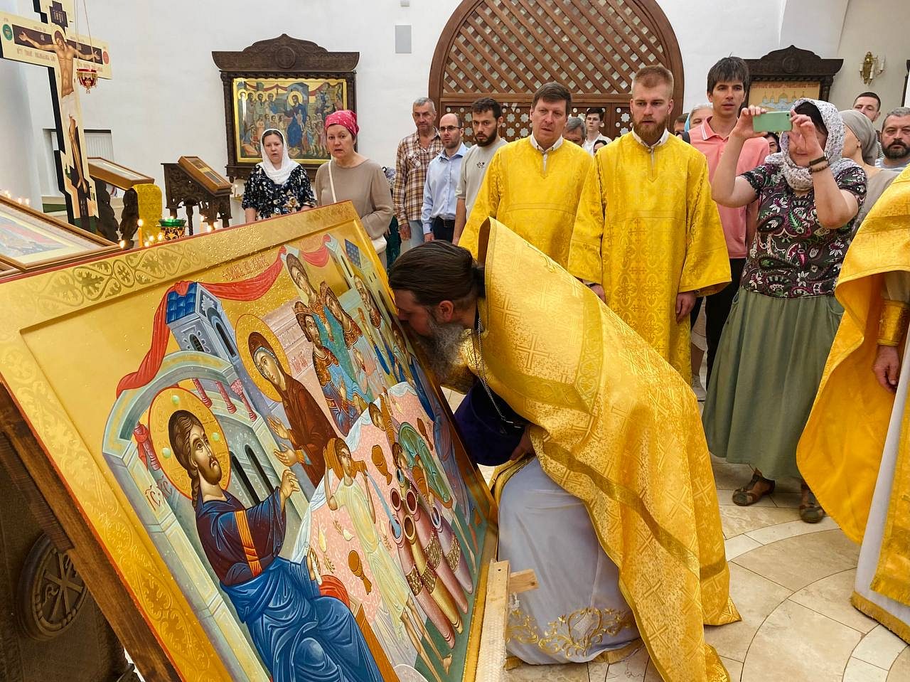 после которого настоятель обратился с проповедью к собравшимся и поблагодарил всех, кто внес свою лепту в написание редкой иконы, и призвал не оставлять молитв о созидании Дома Божьего.