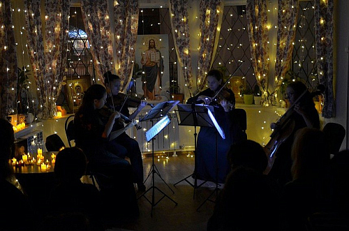 26 ноября 2023 года, в помещении Воскресной школы "Исток" храма Священномученика Ермогена, Патриарха Московского и всея Руси, чудотворца, в Зюзине, состоялся музыкально-терапевтический вечер из цикла «На встречу с музыкой» с участием артистов ансамбля "Quattrosound":