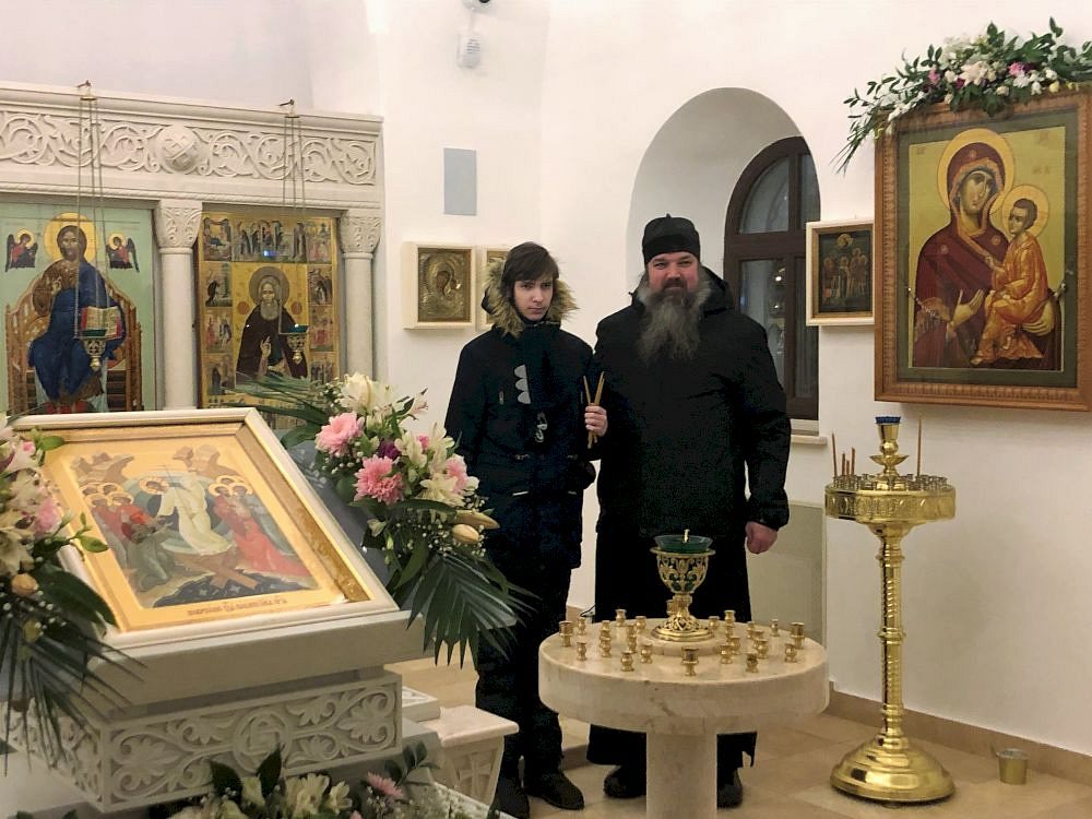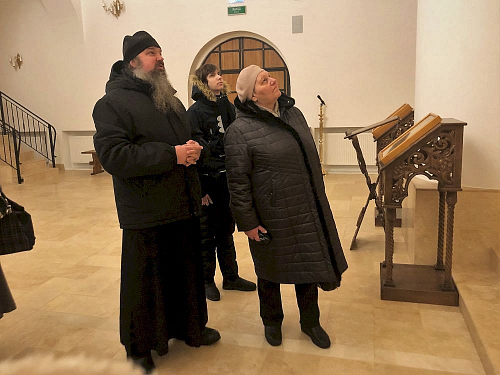 18 декабря 2023 года, в рамках подготовки к городской олимпиаде на тему «История и культура храмов» для учащегося коррекционного класса общеобразовательной школы ГБУ №1862 Чучулина Максима в сопровождении взрослых - мамы Татьяны Владимировны и учителя школы Шерман Елены Михайловны состоялась ознакомительная экскурсия в храм Священномученика Ермогена, Патриарха Московского и всея Руси, чудотворца, в Зюзине.