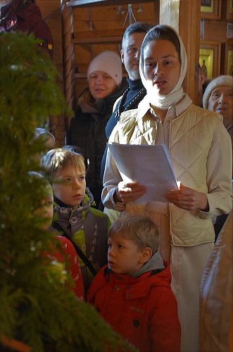 В своей проповеди иерей Иоанн Омелянчук поздравил всех с праздником Рождества Христова, после чего пригласил на праздничное представление с участием воспитанников Воскресной школы и Молодёжного объединения храма.