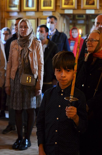 Праздничные Богослужения возглавил настоятель храма иерей Иоанн Омелянчук в сослужении иерея Самуила Мнацаканова и диакона Иоанна Клинцова, клирика храма Христа Спасителя.