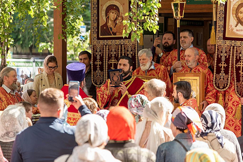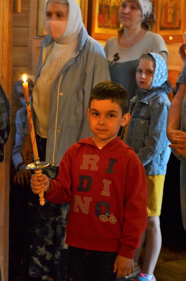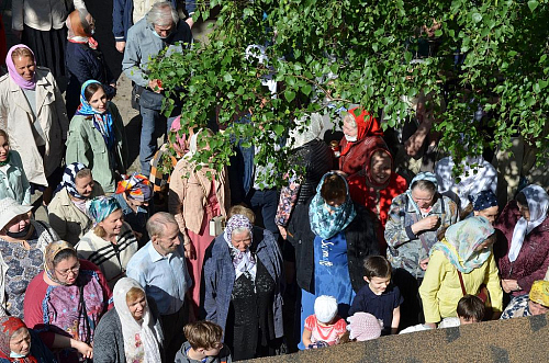 По окончании Божественной Литургии сбыл совершен торжественный Крестный ход с чтением Евангелия и окроплением святой водой,