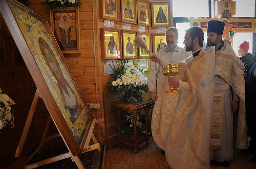Чин освящения иконы после Божественной Литургии совершил настоятель храма иерей Иоанн Омелянчук в сослужении иерея Самуила Мнацаканова и игумена Серафима (Белла).