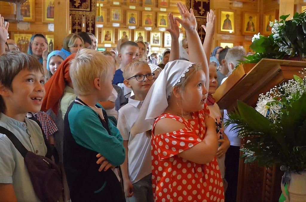 Традиционно первыми поздравления в этот день приняли первоклассники, которым иерей Иоанн вручил памятные сувениры. Настоятель окропил всех молящихся святой водой и поздравил школьников с началом нового учебного года, после чего каждому ребенку вручили книгу и сладкий подарок.