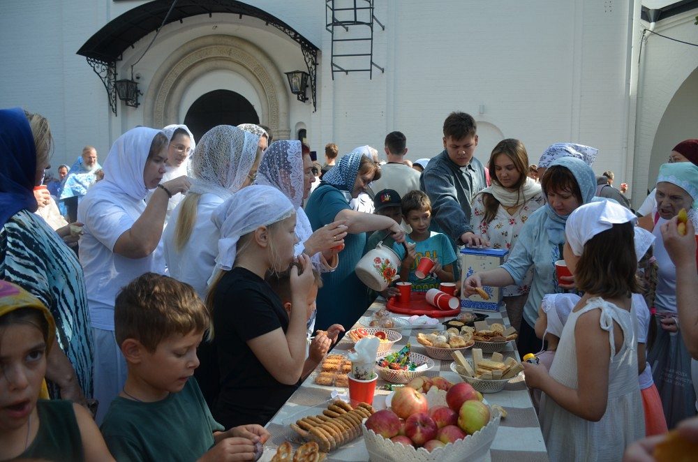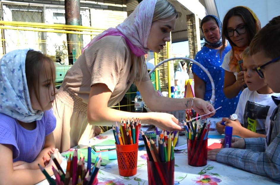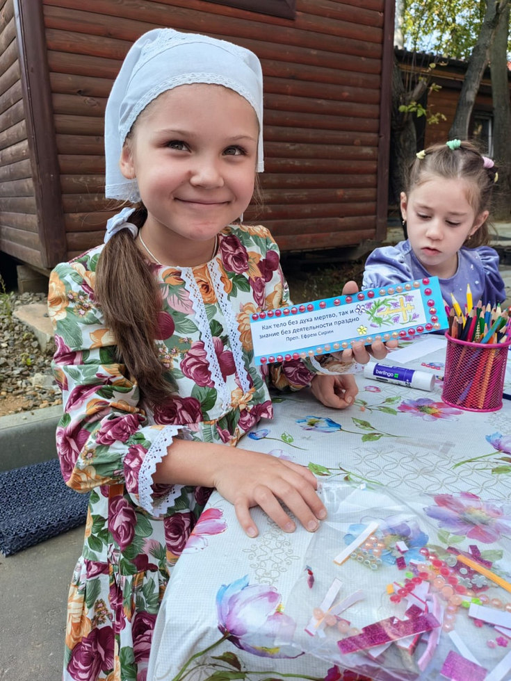 В продолжение праздника для всех прихожан и гостей на прихрамовой территории было организовано чаепитие с бутербродами и ароматным чаем со сладостями, а также творческая мастерская по изготовлению полезных закладок для книг, с цитатами из Священного Писания о пользе учения, в которой приняли участие дети Воскресной школы и гости праздника.
