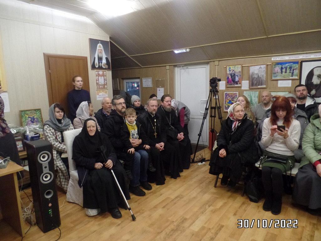 Творческий вечер начался с молитвы священномученику и заупокойной литии по его усопшим сродникам. Затем в Воскресной школе храма продолжилось основное мероприятие.
