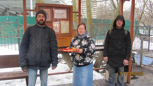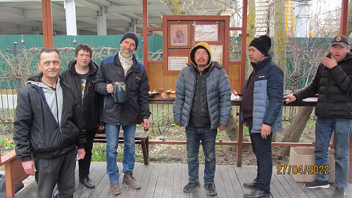 Волонтеры, представители приходского молодежного объединения храма готовят и ежедневно раздают горячие обеды для бездомных. Продукты жертвуют прихожане. В день удается накормить 10-20 человек. Еда раздается с соблюдением всех санитарных норм и дезинфекции. При этом с бездомными волонтеры проводят беседы о Православной вере, пред трапезой совершают молитвы.