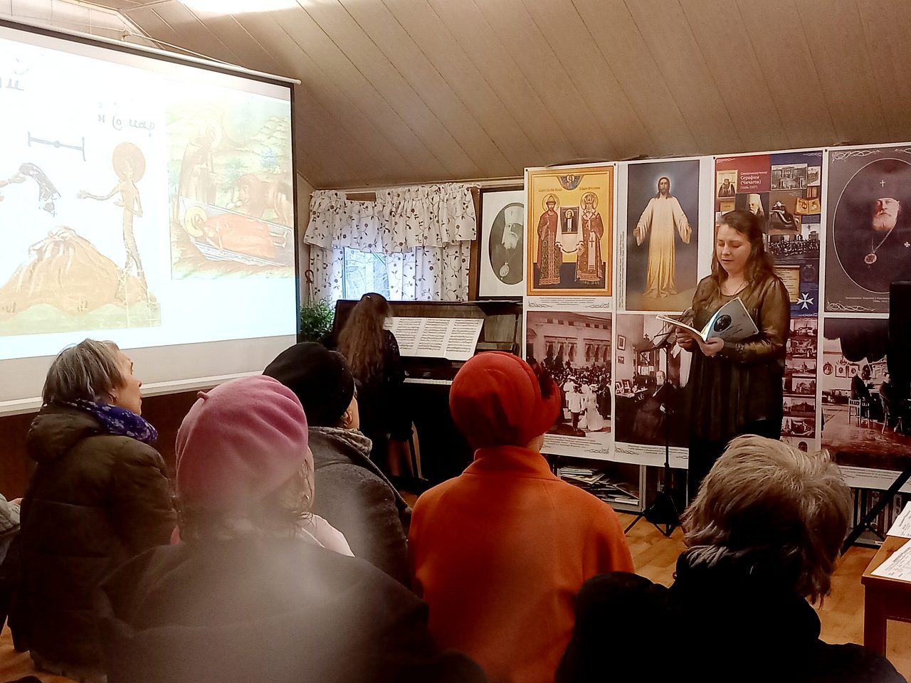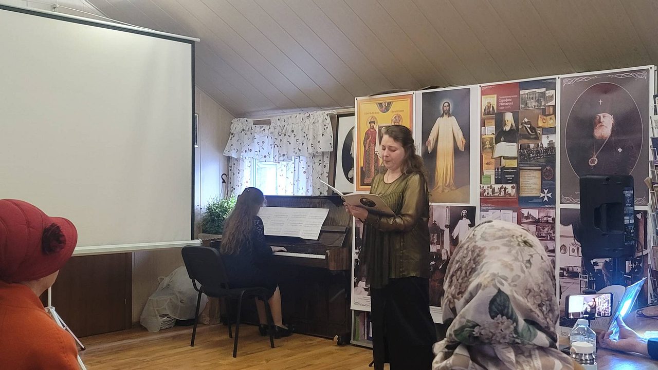Творческий вечер начался в храме с молитвы священномученику Серафиму и продолжился в Воскресной школе.