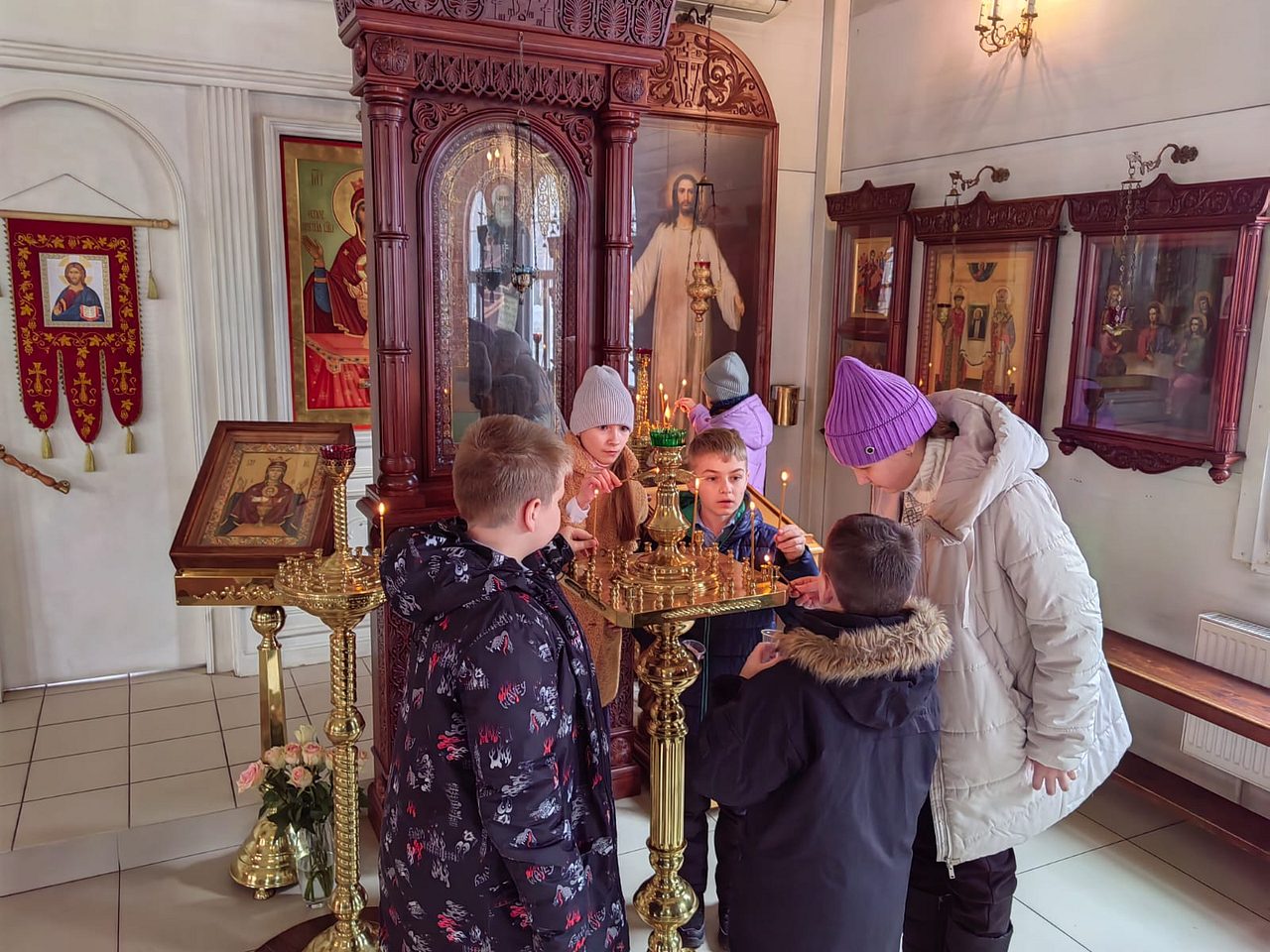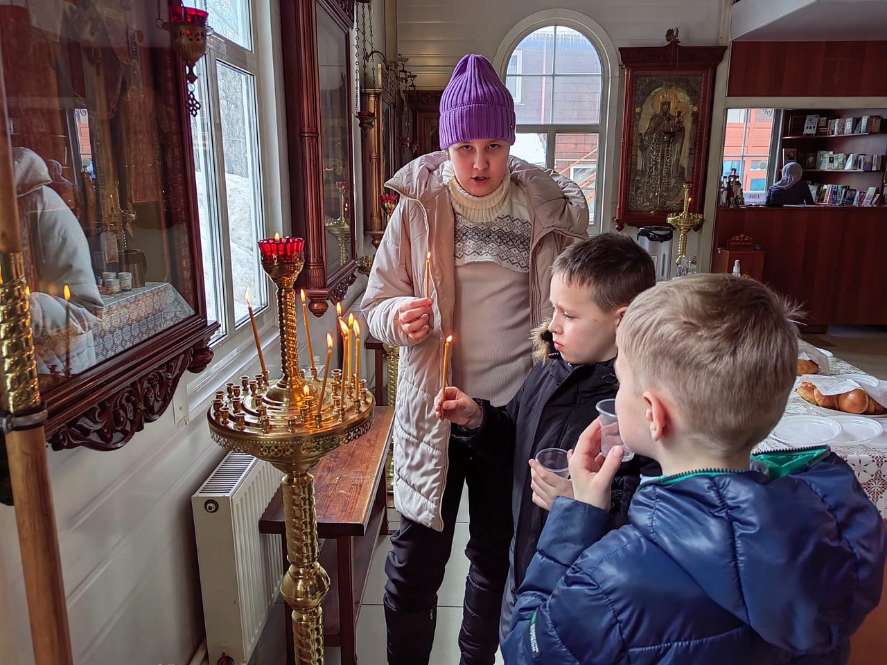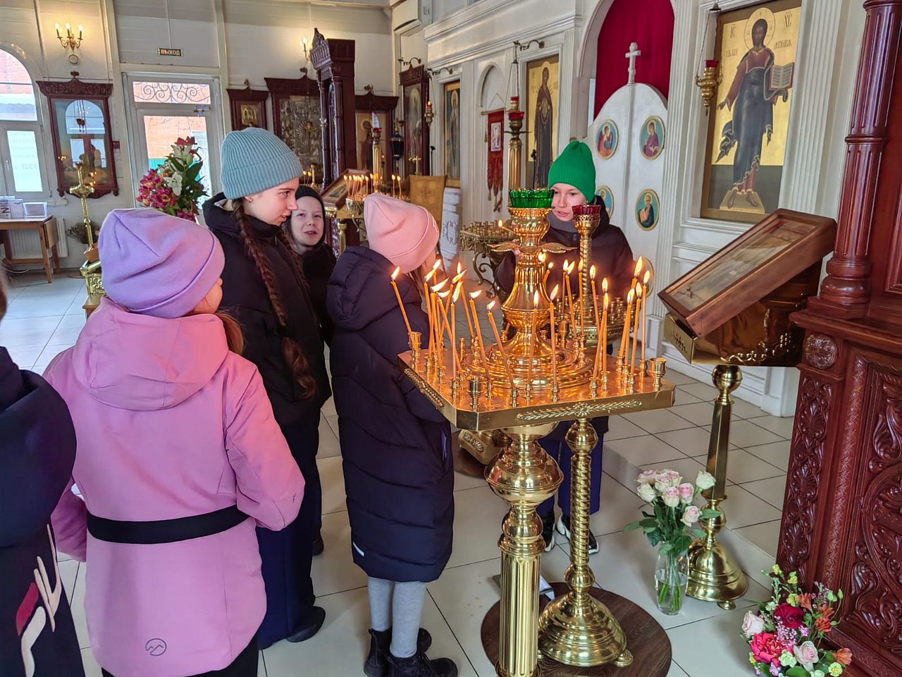 В конце экскурсии ребята помолились и поставили свечи у икон за своих родных и близких.