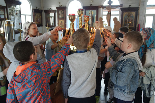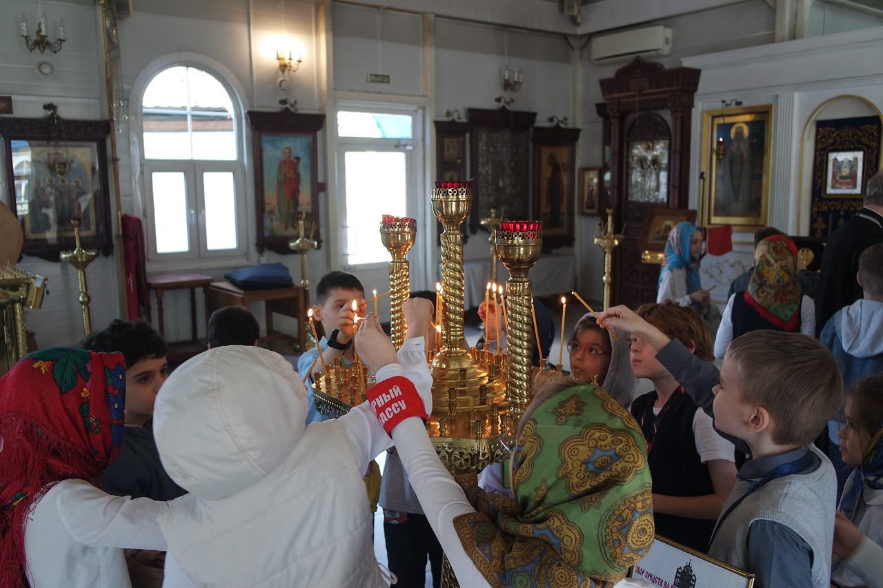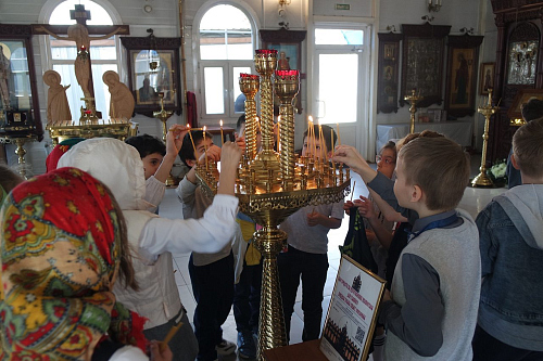 Учащиеся помолились и поставили свечи у икон за своих родных и близких.