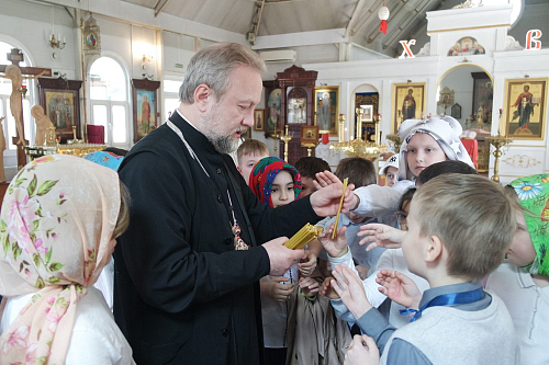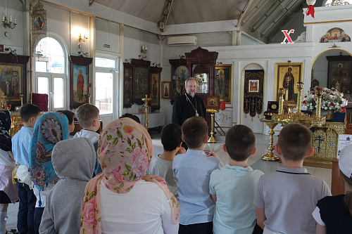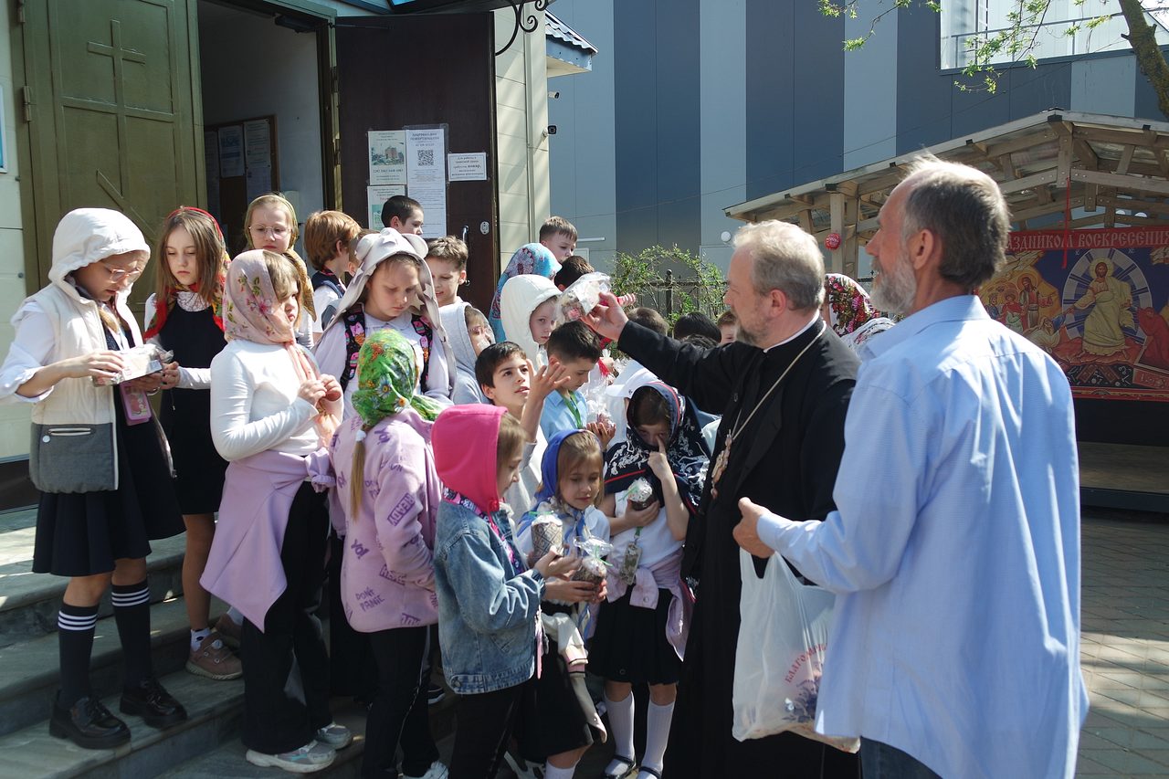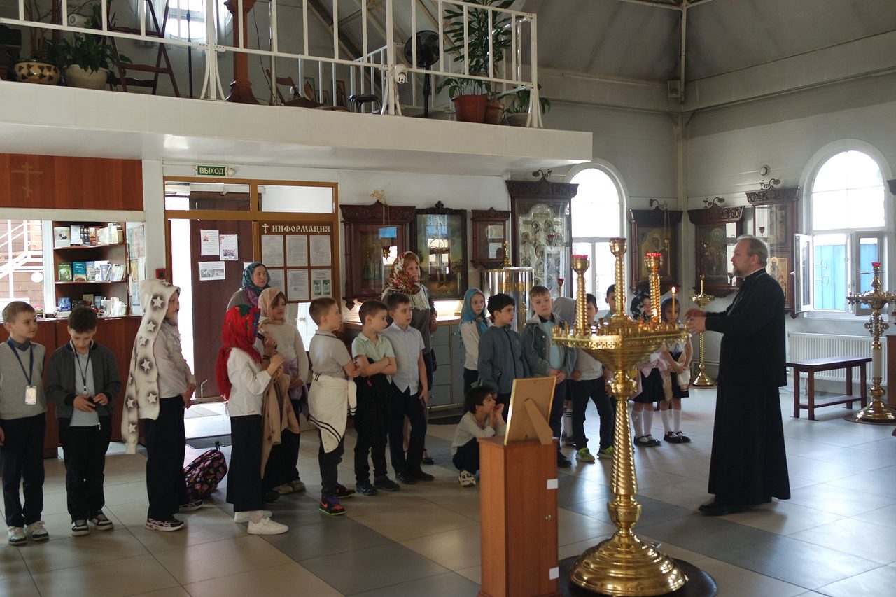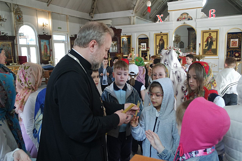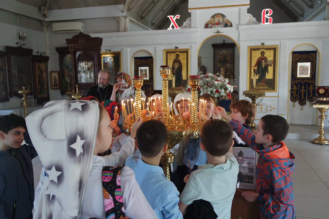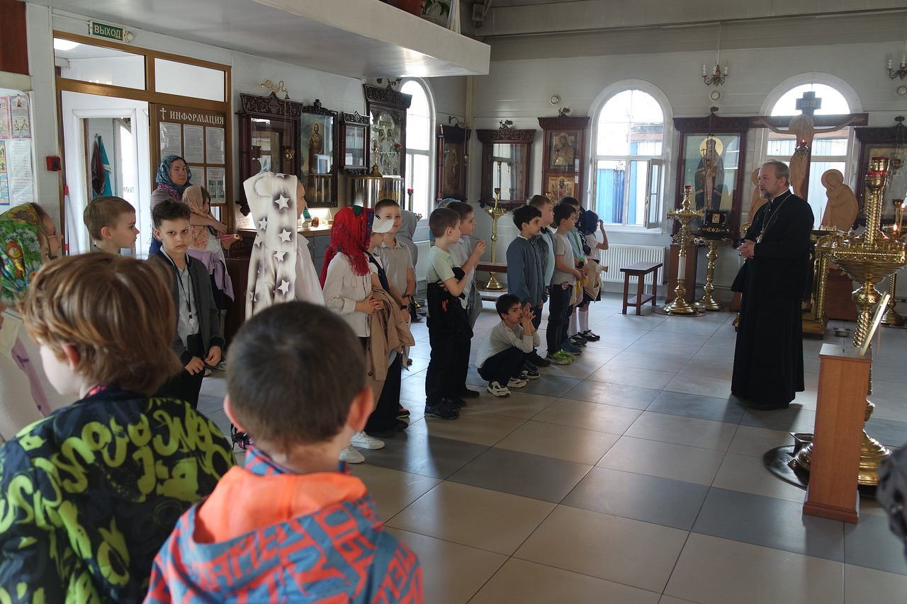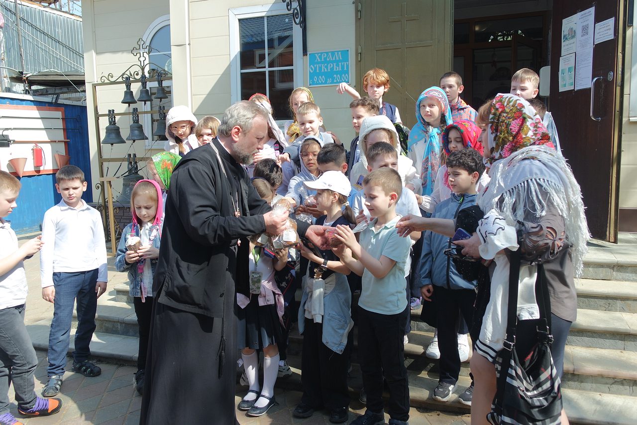 23 апреля 2025 года, в Среду Светлой седмицы, в храме священномученика Серафима, митрополита Петроградского в Южном Бутове г. Москвы, настоятель храма Священномученика Серафима, митрополита Петроградского г. Москвы иерей Максим Глухих провел экскурсию для учащихся 3-го класса общеобразовательной школы № 1355,