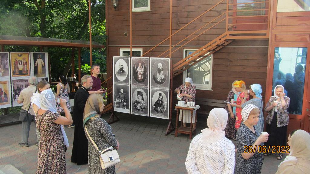 После концерта прихожане и гости смогли ознакомиться с фотовыставкой, подготовленной настоятелем храма иереем Максимом Глухих, выставкой рисунковучеников одной из школ Санкт-Петербурга и книжной выставкой, посвященными священномученику Серафиму.