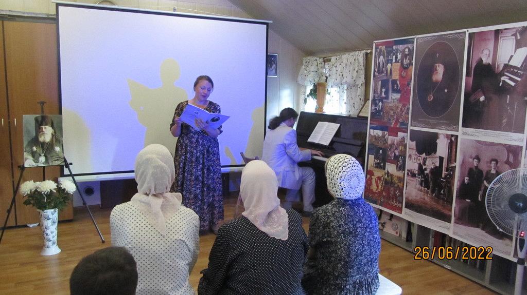 В исполнении Ларисы Черновой,в сопровождении Александра Соколова, прозвучали фрагменты духовных и светских музыкальных сочинений святителя Серафима:«О Мати Божия», «Архидиакон Стефан», «Хочу молиться».Пианист Александра Соколова исполнил элегию «Мой путь еще не кончен».